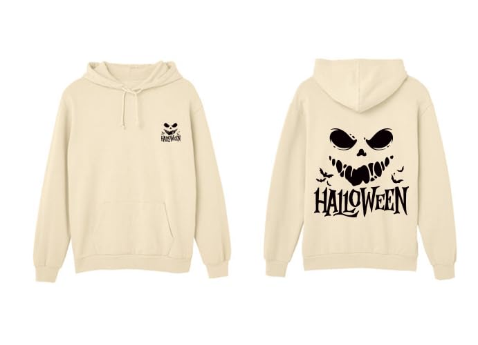 Generic - بلوفر بغطاء للرأس وجيب أمامي بتصميم رسومات الهالوين وطابعة وجه مخيف، لون كريمي (مقاس سمول S)