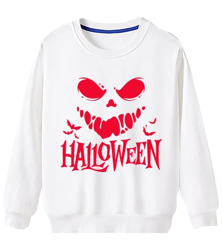 Generic - سويت شيرت ابيض برسومات الهالوين من مزيج القطن، كم طويل، تصميم اليقطين المخيف، مقاس (M)