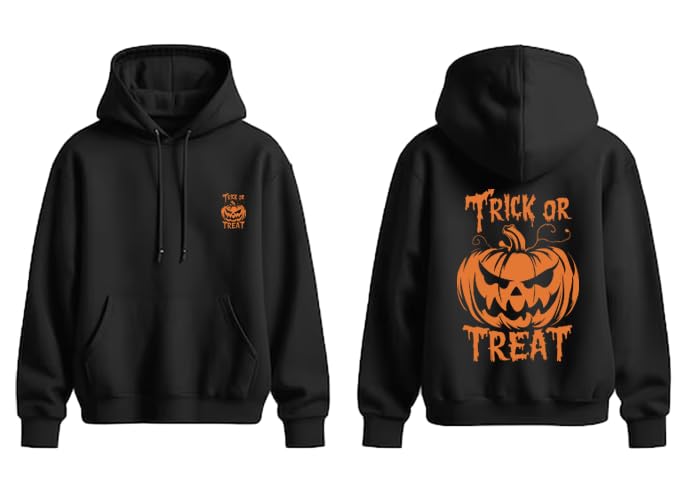 Generic - سويت شيرت بغطاء للراس للهالوين، اسود مع تصميم خدعة او حلوى اليقطين البرتقالي، بلوفر للجنسين (مقاس M)