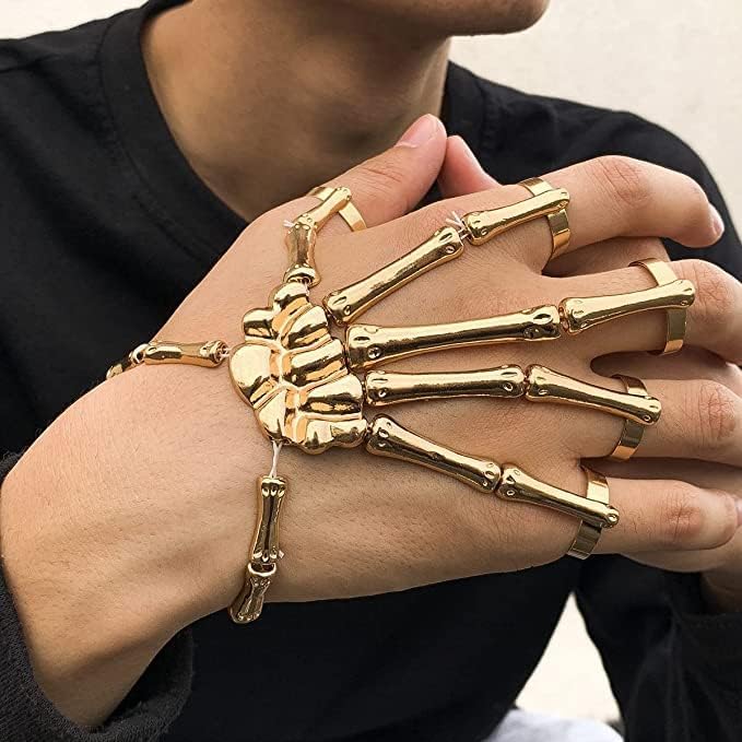THE PACK - سوار فريد مصنوع يدويا بتصميم بانك مرعب على شكل عظام اصابع يد للنساء والرجال والاطفال في الهالوين والحفلات الموسيقية مع خاتم قابل للتعديل من امازينج ايجب, One Size, معدن, بدون أحجار كريمة