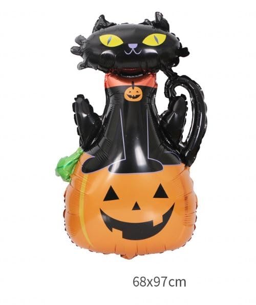 Generic - قطة سوداء قابلة للنفخ على شكل يقطين للهالوين، ديكور للحفلات الداخلية والخارجية، مقاس كبير 68 × 97 سم، بالون زينة مخيف للعطلات