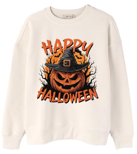 Generic - سويت شيرت بلون بيج للهالوين بتصميم جاك اولانتر المخيف مع قبعة ساحرة من القطن، للجنسين مقاس (S)