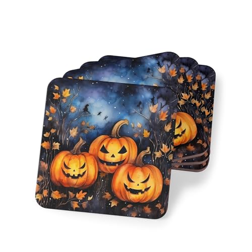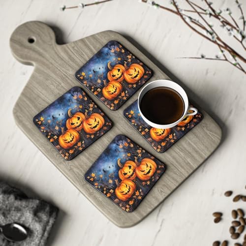 Generic - مجموعة قواعد اكواب بتصميم يقطين للهالوين مكونة من 4 قطع - تصميم خريف ليلي مخيف، قواعد اكواب مشروبات جاك او لانترن - ديكور طاولة الهالوين الخريفي - قواعد اكواب مطاطية غير قابلة للانزلاق لديكور الطاولة