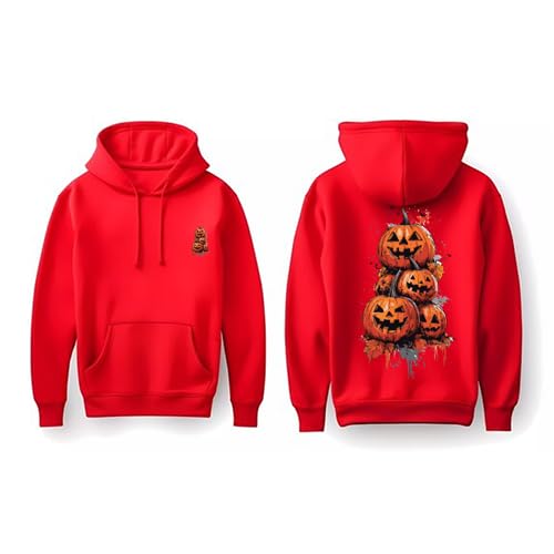 Generic - بلوفر بغطاء للرأس بتصميم يقطين للهالوين، سويت شيرت قطني احمر مع جيب امامي (S)