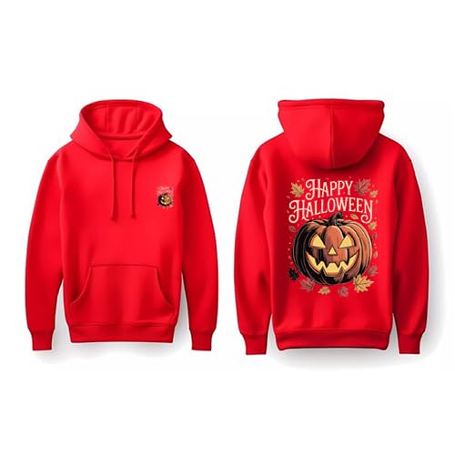 Generic - بلوفر بغطاء للرأس بتصميم يقطين للهالوين، سويت شيرت احمر مع طباعة اوراق الخريف (3-6 سنوات)