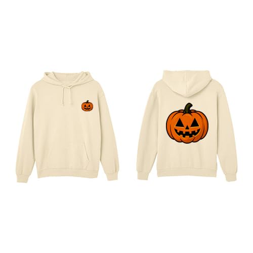 Generic - سويت شيرت بغطاء للرأس قطن بتصميم وجه اليقطين للهالوين مع جيب أمامي، بتصميم طباعة جاك اولانترن للجنسين للارتداء في العطلات، مقاس لارج، بيج