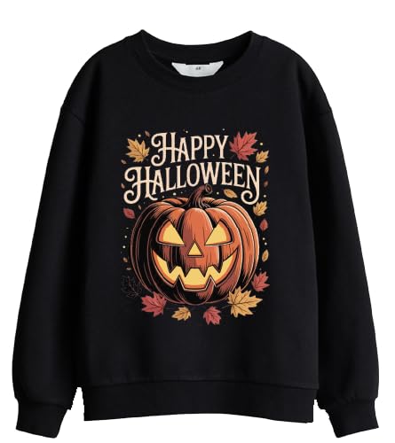 Generic - سويت شيرت برقبة دائرية ضيقة برسومات اليقطين للهالوين، بتصميم للخريف، لون أسود، مقاس سمول (S)