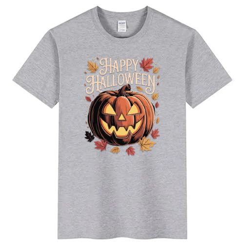 Generic - تي شيرت هالوين رمادي يقطين، رقبة دائرية ضيقة من القطن للجنسين، تصميم اوراق الخريف الخريف، مقاس موضوع هالوين سعيد (3-6 سنوات)