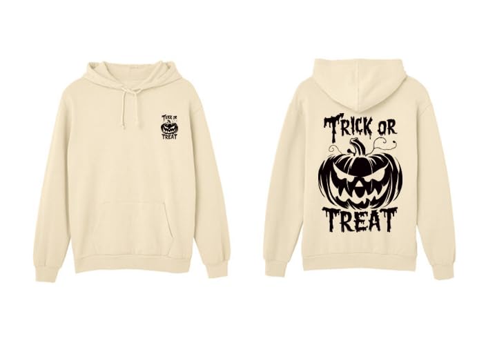 Generic - سويت شيرت بغطاء للراس بتصميم يقطين للهالوين، تصميم خدعة او حلوى، لون كريمي، كنزة صوفية مقاس (S)