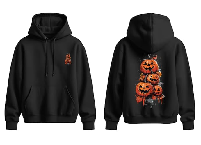 Generic - بلوفر بغطاء للرأس مطبوع عليه صورة اليقطين للهالوين، سويت شيرت من مزيج القطن الأسود مع تصميم جاك اولانترن (ميديوم M)