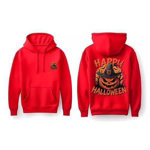Generic - بلوفر بغطاء للرأس بطبعة يقطين للهالوين، سويت شيرت قطن مع جيب أمامي للجنسين، ميديوم، أحمر