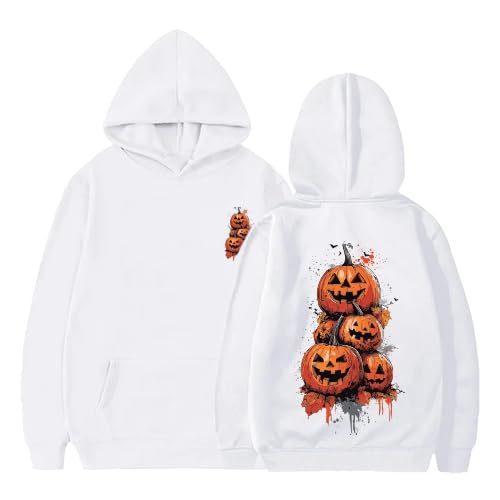 Generic - سويت شيرت بغطاء للرأس بطبعة اليقطين للهالوين، بلوفر بمزيج من القطن الأبيض، أكمام طويلة (مقاس اكس اكس لارج)