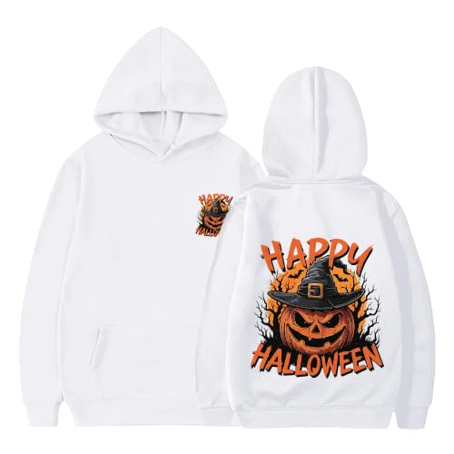 Generic - بلوفر بغطاء للرأس مطبوع عليه صورة اليقطين للهالوين، ابيض، تصميم جرافيك مخيف (6-9 سنوات)