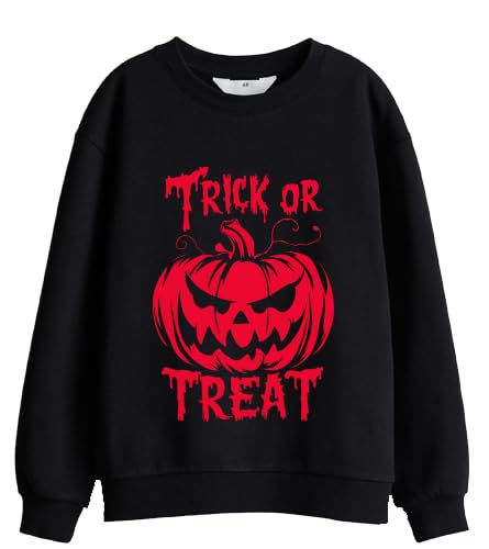 Generic - سويت شيرت بتصميم يقطين للهالوين، تصميم خدعة او حلوى، اسود مع طباعة حمراء مقاس (L)