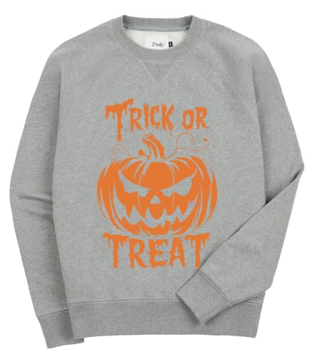 Generic - سويت شيرت هالوين اليقطين، تصميم خدعة او حلوى، مزيج من القطن الرمادي، كم طويل، طباعة مخيفة مقاس (XL)