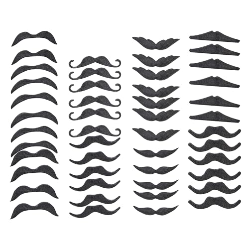 Tcrogsciss - شوارب وهمية ذاتية اللصق للهالوين، ملصقات حفلات تنكرية مبتكرة، اكسسوارات لحية لإطلالة رجل فرنسي أو محقق أو قرصان، لون أسود، مجموعة من 48 قطعة