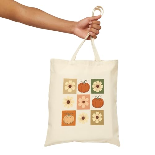 Generic - شنطة يد كبيرة توت قماشية مزينة برسومات اليقطين والزهور مع سحاب - 884