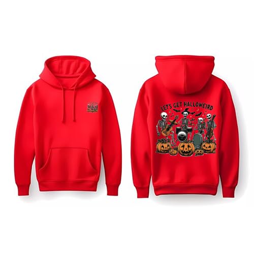 Generic - سويت شيرت بغطاء رأس من القطن بتصميم الهيكل العظمي راقص للهالوين، لون أحمر، مقاس من 3 غلى 6 سنوات