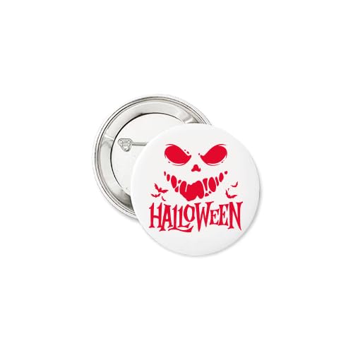 Generic - شارة دبوس دائرية بتصميم جمجمة للهالوين، ابيض واحمر، اكسسوار للحفلات