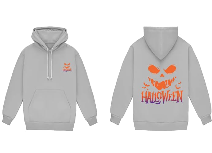 Generic - بلوفر بغطاء للرأس بتصميم وجه شبح مخيف للهالوين، رمادي مع طباعة برتقالية، للجنسين (S)