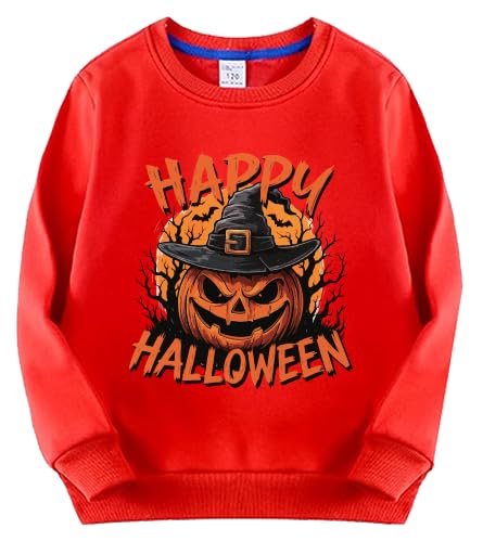 Generic - سويت شيرت للهالوين، بلوفر قطني احمر بتصميم قبعة ساحرة على شكل اليقطين، مقاس (S)