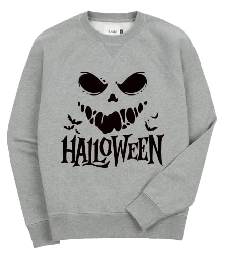 Generic - سويت شيرت بطابع الهالوين، بلوفر من مزيج القطن الرمادي مع وجه شبح مخيف، تصميم خفافيش، رقبة دائرية بدون طوق جرافيك كاجوال مقاس (M)
