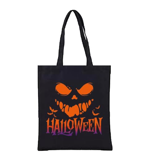 Generic - شنطة يد كبيرة توت للهالوين، قماش اسود بتصميم يقطين مخيف برتقالي