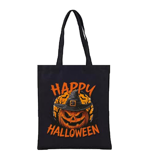 Generic - شنطة يد كبيرة توت للهالوين بتصميم ساحرة اليقطين، شنطة تسوق قماشية سوداء