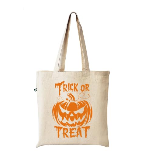Generic - شنطة يد كبيرة توت من القماش بتصميم يقطين، بطباعة برتقالية على شكل قرع للهالوين، بطباعة باللون البرتقالي