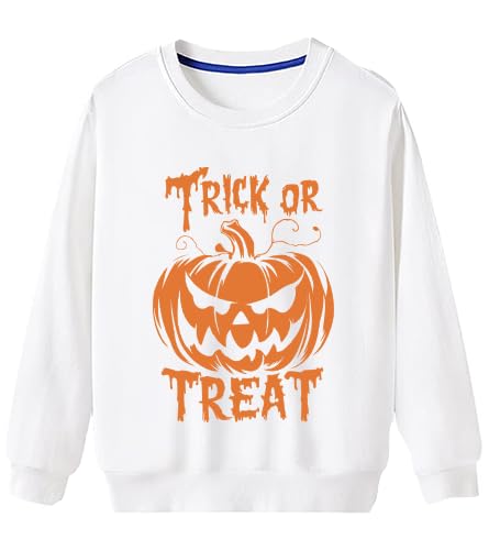 Generic - سويت شيرت ابيض مطبوع عليه عبارة «Trick or Treat» للهالوين باكمام طويلة (6-9 سنوات)