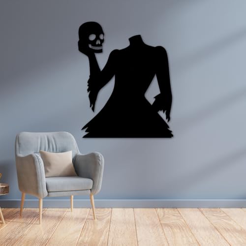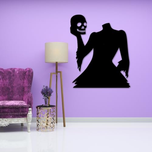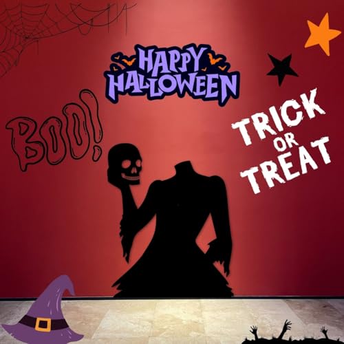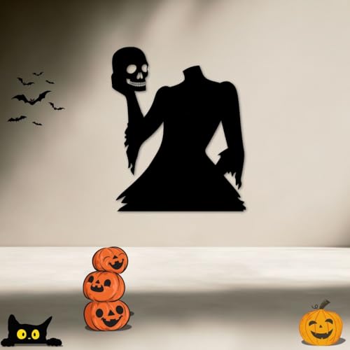 Generic - زينة حائط للهالوين بشكل هيكل عظمي أسود مع جمجمة ويقطين برتقالي وقطة سوداء بنمط قوطي (مقاس ميديوم)