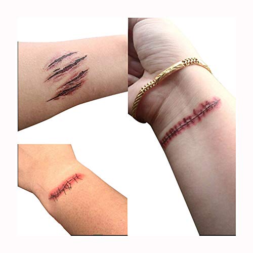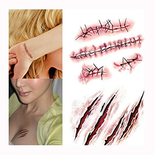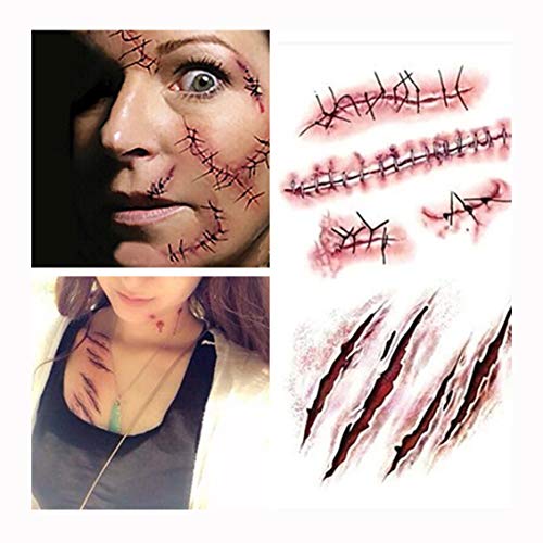 Generic - تاتو على شكل ندبات زومبي للهالوين مع زينة وهمية من الماكياج بنمط قشور جروح، ملصقات مخيفة على شكل اصابات وجروح دامية