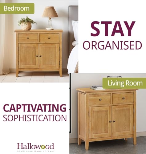 Hallowood Furniture - وحدة تخزين جانبية صغيرة استون بتأثير خشب البلوط تحتوي على درجين وخزانة بباب مع أرفف قابلة للتعديل للتخزين في غرفة النوم أو غرفة المعيشة بتصميم واسع يوفر مساحة تخزين عملية وأنيقة من هالوود فيرنتشر