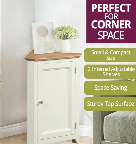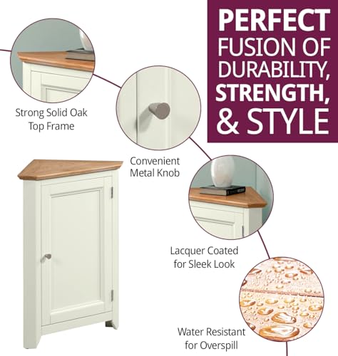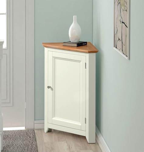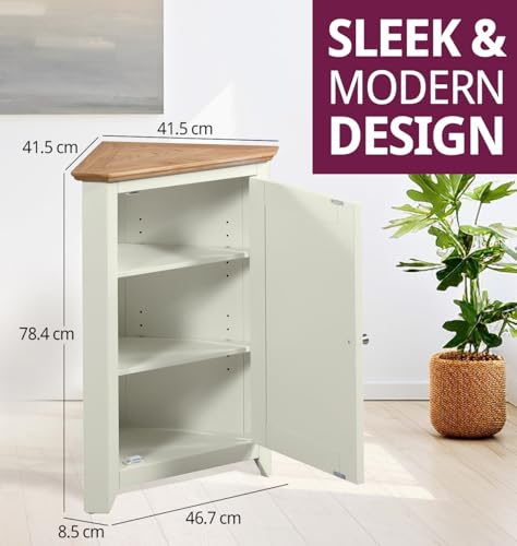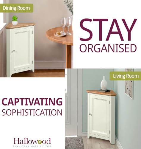 Hallowood Furniture - خزانة تخزين صغيرة كليفتون من خشب البلوط بلون اوف وايت من هالوود فيرنتشر | خزانة رواق منخفضة خشبية كريمية مع رف