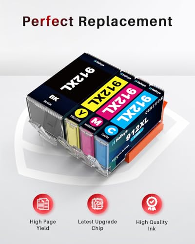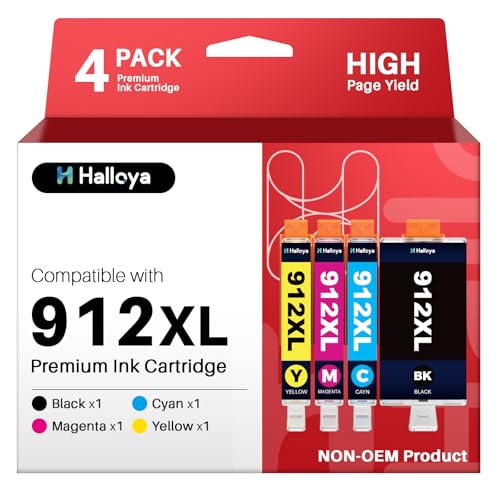 Halloya - عبوة حبر طابعة متوافقة مع طابعات اتش بي وبديل لخراطيش اتش بي 912XL ولطابعات اوفيس جيت 8012/8014/8015/8017 وسلسلة اوفيس جيت برو 8022/8023/8024/8025، عبوة من 4 قطع