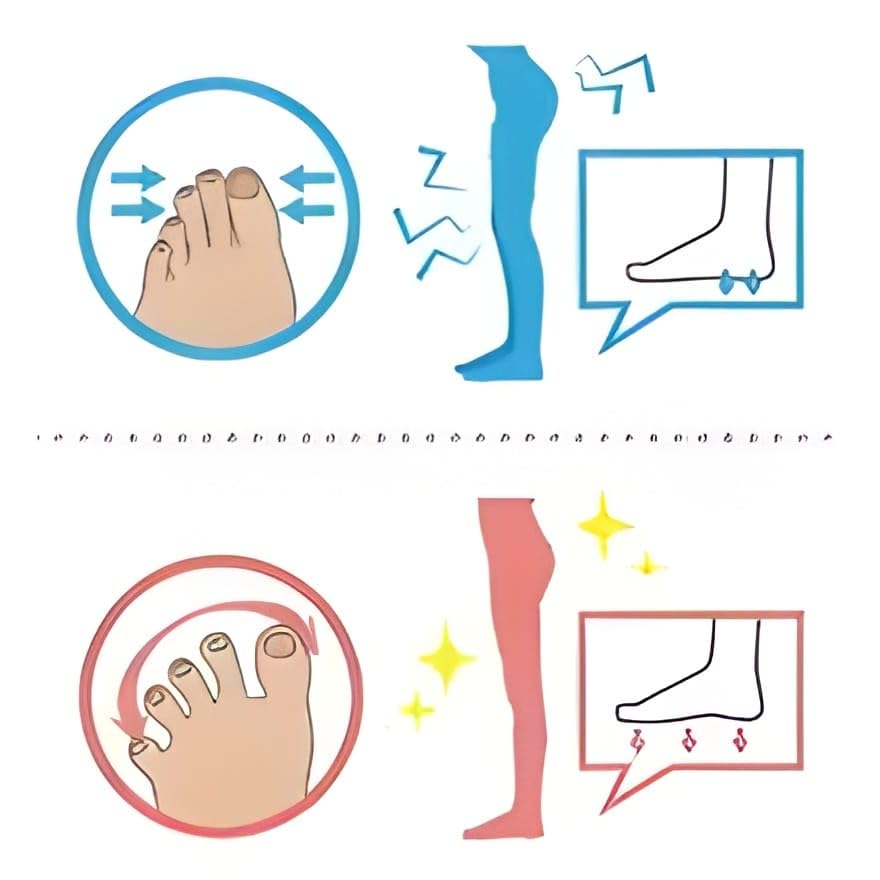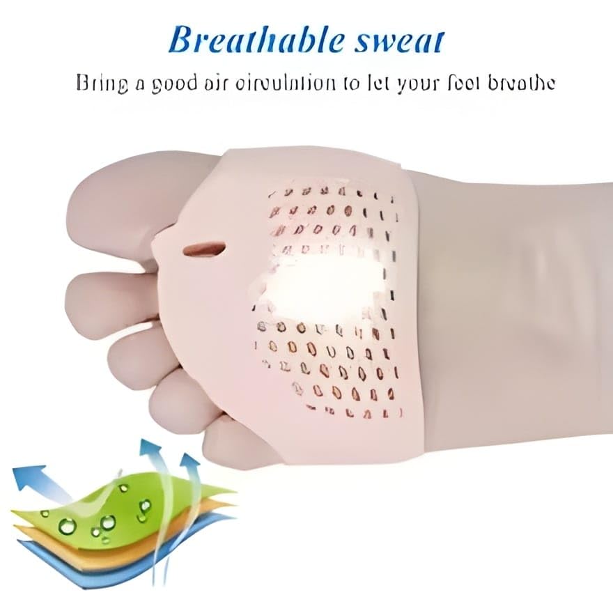 - دعم تقويمي للقدم: يساعد على تصحيح وضعية الأصابع تدريجياً ويخفف من آلام الورم الملتهب والتشوهات ويحسن من محاذاة القدم الطبيعية