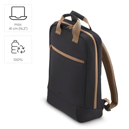 Hama - شنطة ظهر يومية مبطنة للاب توب حتى 16.2 بوصة مع جيب أمامي وجيب داخلي خفيفة الوزن ومقاومة للماء من هاما، لون أسود