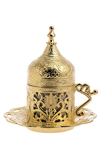 HamamTamam - طقم اطباق فناجين تقديم القهوة العربية والتركية واليونانية على الطراز العثماني بلون ذهبي من 6 قطع حمام تمام