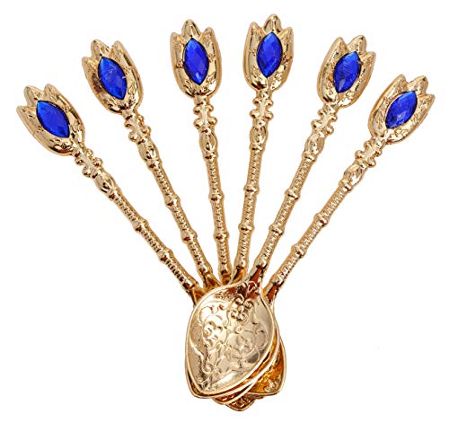 - طقم فناجين قهوة اسبريسو / تركي مكون من 33 قطعة لـ 6 أشخاص - فنجان قهوة عثماني شرقي بتصميم تقليدي بنمط الأناضول (6 أكواب داخلية من البورسلين، 6 حوامل أكواب نحاسية، 6 صحون، 6 أغطية، 1 صينية، 1 وعاء تركي، 1 غطاء للوعاء، 6 قطع من ملاعق ذهبية اللون - قد يختلف لون الحجر) اللون: ذهبي