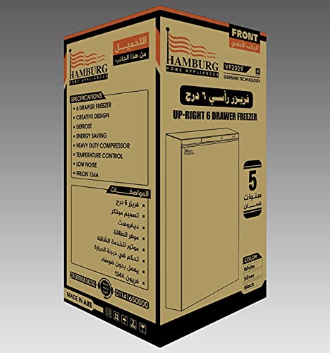 Hamburg - فريزر رأسي 6 درج من هامبورج سعة 245 لتر - فضي - VF-2029