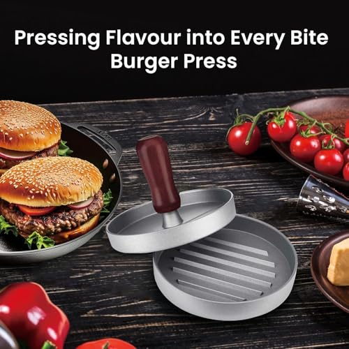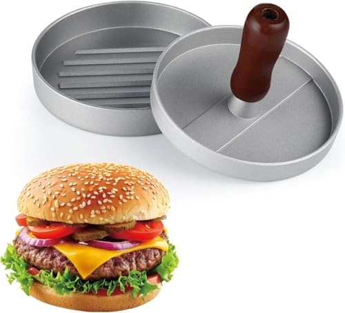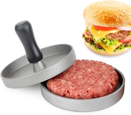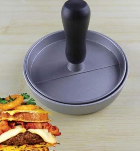 Generic - مكبس صنع برجر مصنوع من معدن الألومنيوم مقاوم للالتصاق للشواء، مكبس برجر من الفولاذ المقاوم للصدأ من رنا ستور لون رمادي