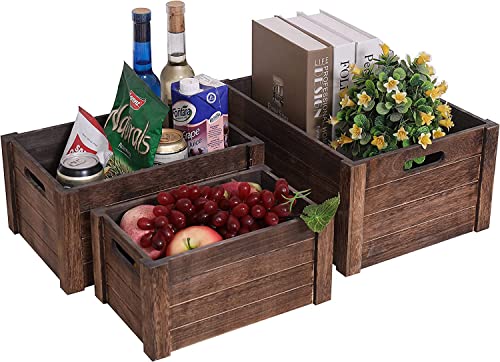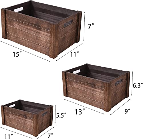 Hamdan - قفص خشبي ابيض عتيق للتخزين من مجموعة حمدان، صناديق ديكور ريفية، مجموعة من 3 اقفاص تخزين خشبية متداخلة كبيرة جدا لديكور المنزل - بني