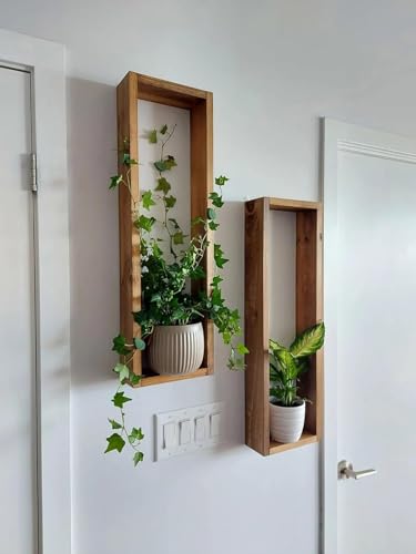 Hamdan - رفوف خشبية بتصميم ريفي على شكل صندوق خشبي طويل لديكور الحائط لغرفة المعيشة وغرفة النوم والمنزل من حمدان كولكشن