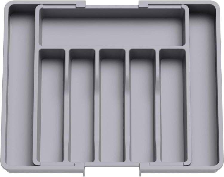 - سعة كبيرة: قم بتنظيم درج مطبخك وتوفير مساحة أكبر مع منظم الأدوات الفضية هذا. تأتي مع لوحين قابلين للتوسيع على اليسار واليمين لتخزين المزيد من أدوات المائدة وأدوات المطبخ.