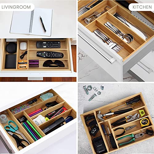 Hamillar - منظم صينية فضية من الخيزران من هاميلار، درج المطبخ، حامل ادوات مائدة قابل للتوسيع للمنزل وغرفة النوم والمكتب (بامبو 17 انش)