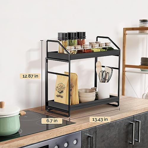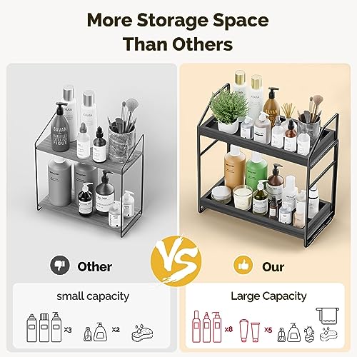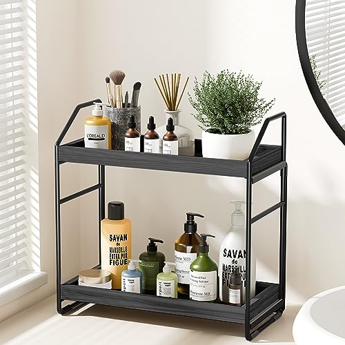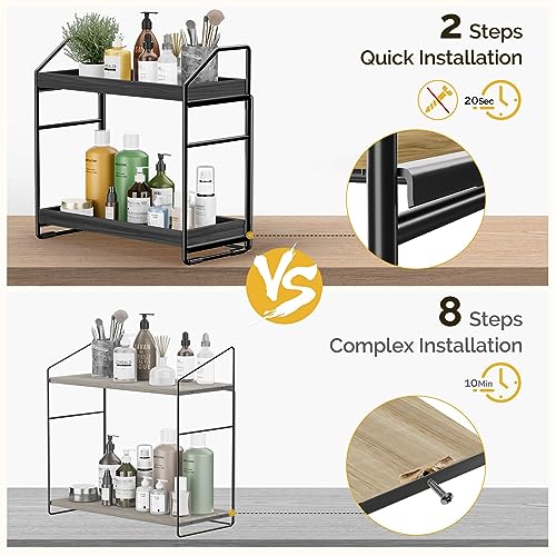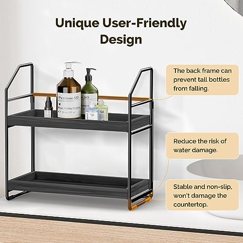 HAMITOR - منظم حمام قابل للتعديل بطبقتين من هاميتور: رف منضدة سريع التركيب بدون ادوات للتخزين في زوايا الحمام الخشبية للمطبخ تحت الحوض - رف حامل مكياج - اسود