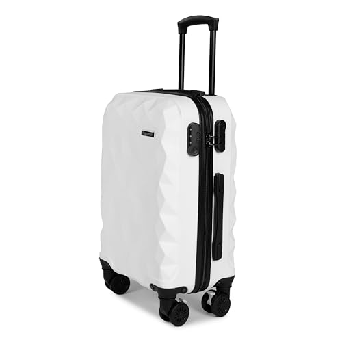 HAMMER luggages - حقيبة سفر من هامر، لون أبيض دايموند، مصنوعة من مادة ABS، قطعة واحدة، خفيفة الوزن ومقاومة للصدمات ومتينة