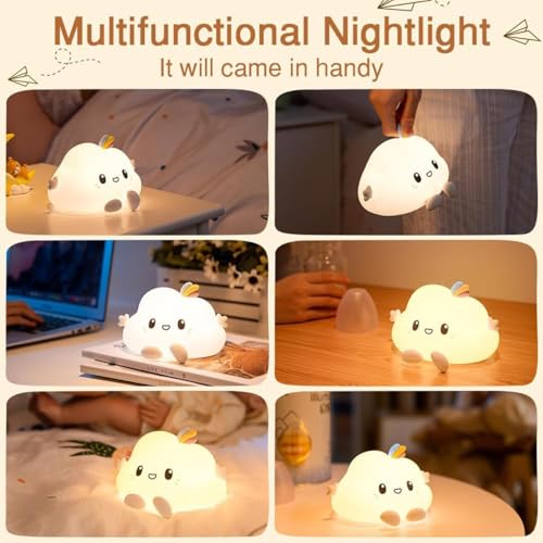 HAMSA KITCHEN & LIFESTYLE - مصباح سحابة ليلي لطيف مرن لغرفة النوم، مصابيح ليلية من السيليكون قابلة لإعادة الشحن وتعمل باللمس مع عداد وقت، ديكور لسطح المكتب والمكاتب والأطفال الصغار من همسا