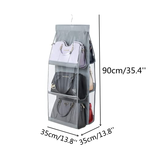 HAN SHENG - هان شينج 1 قطعة من 6 جيوب معلقة منظم حقيبة يد منظم شفاف معلق حقيبة مجموعة حامل تخزين حقيبة حقيبة خزانة الملابس منظم موفر للمساحة (رمادي)