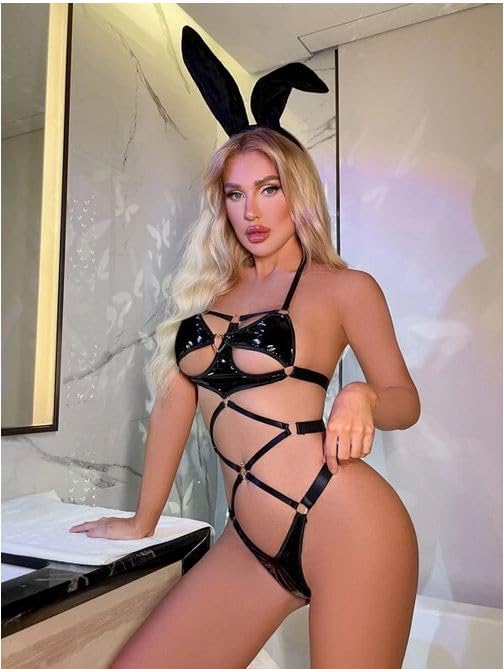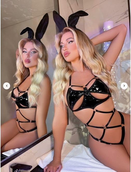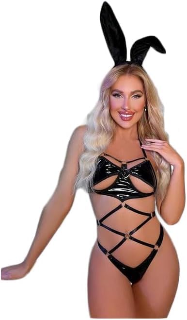 Hanady - لانجري سالوبيت بكباسين مفرغ وحلقات متصلة وتصميم دبدوب بدون شريط رأس، متعدد الألوان، من هنادي، البوليستر